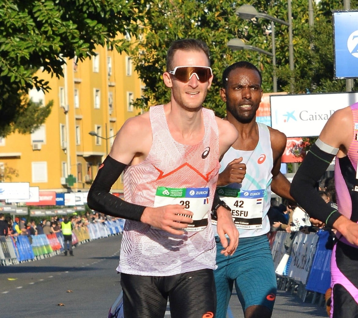 Selon ses propres mots, Nicolas Navarro qui a senti dès le début que cela n’allait pas être une partie de plaisir a décidé de rester dans le groupe mais sans possibilité de garder ce rythme peu avant le 25e kilomètre. Ayant pensé à l’abandon au 30e kilomètre, il a finalement terminé dans la douleur en 2h09’24 devant Bastien Augusto et bien loin de son objectif.