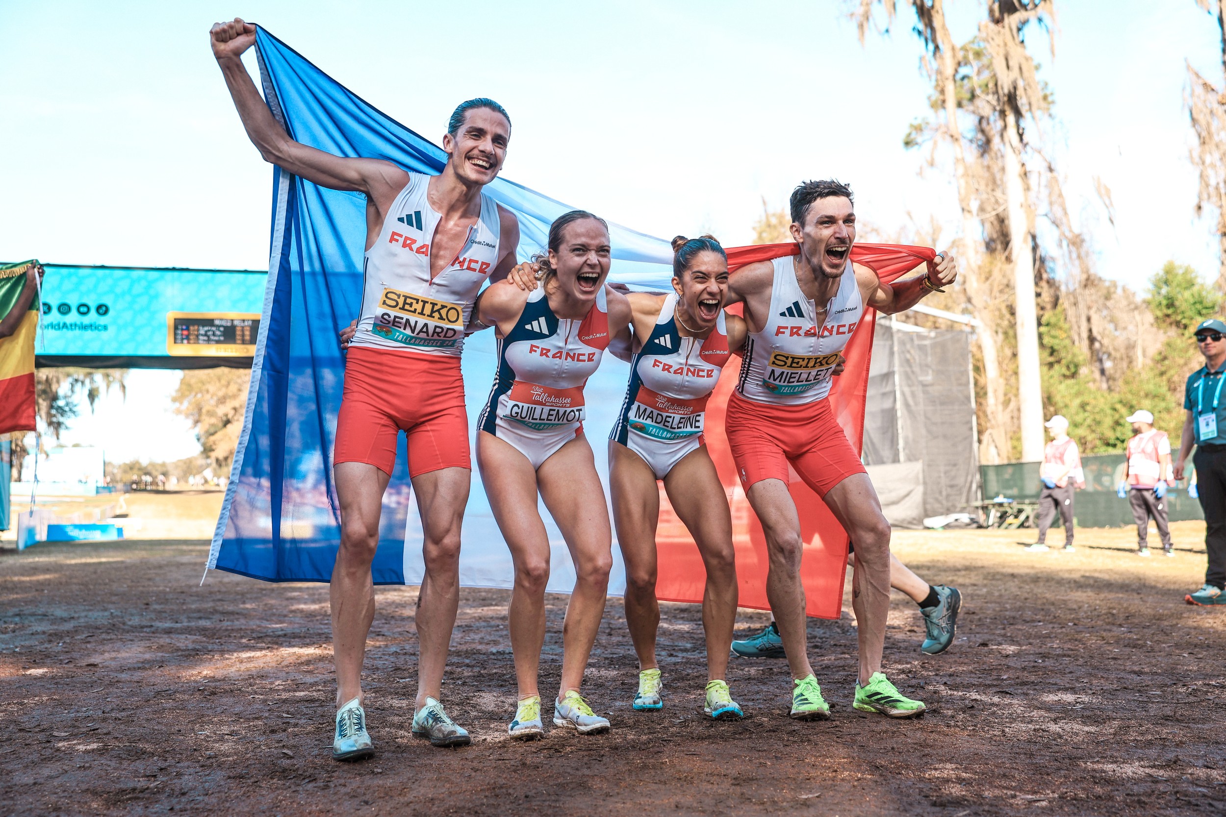 Remarquable performance du relais mixte Français lors des Championnats du monde de cross-country à Tallahassee en Floride (Etats-Unis). Alexis Miellet, Sarah Madeleine, Antoine Senard et Agathe Guillemot ont obtenu la médaille d’argent derrière l’Australie et devant l’Ethiopie.
